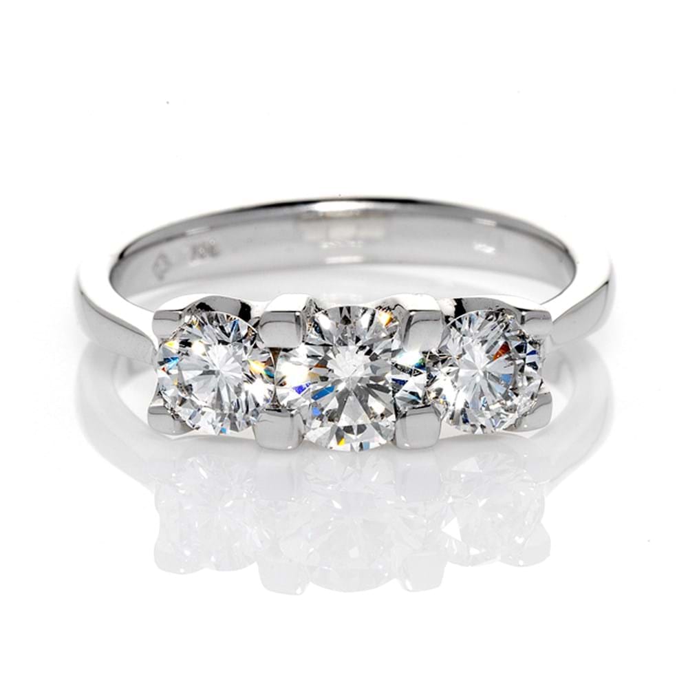 The Avenza Three Stone is a truly eye catching ring. With heavy square claws, this design is bold and striking. An impressive ring at great value, with a contemporary aesthetic and a dazzling finish.