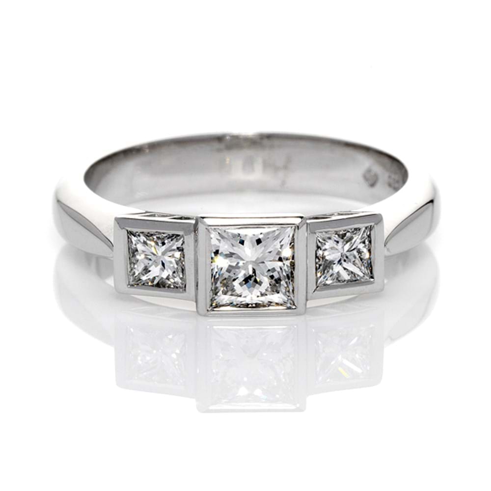 The Aurelia features tapering princess cut diamonds. With practical full bezel settings, it is comfortable and easy to wear in a clean and simple design. Square and geometric lines appeal to those who prefer a sophisticated and uncomplicated style.